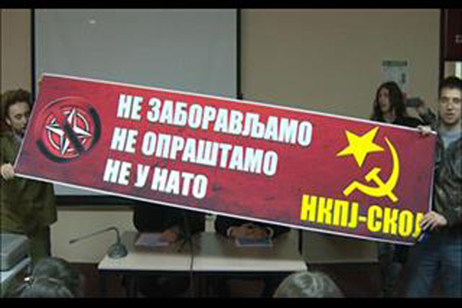 Активисти НККПЈ-СКОЈ на скупу НАТО скандирали: „Убице напоље из Србије”