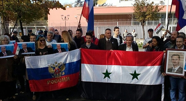 ДАНАС је у испред амбасаде РФ у Београду организацији сиријских студената у Београду, одржан скуп захвалности Руској Федерацији због подршке Сиријској Арапској Републици.