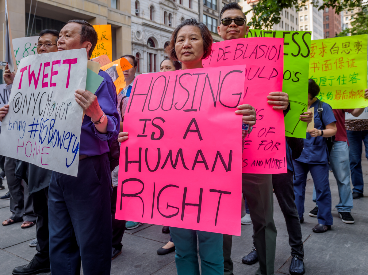 * Од владе захтевају да „хитно и трајно смешта све Њујорчане који постану бескућници“. Захтевају и да инвестира у јавне и социјалне станове широм државе