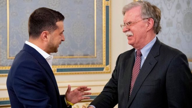 ЏОН Болтон – помоћник Доналда Трампа за националну безбедност боравио је у Кијеву да би руководство Украјине присилио да одустане од продаје кинеским компанијама Skyrizon и Xinwei Group половине акција завода „Мотор Сич“ који производе авиионске и хеликоптерске моторе.
