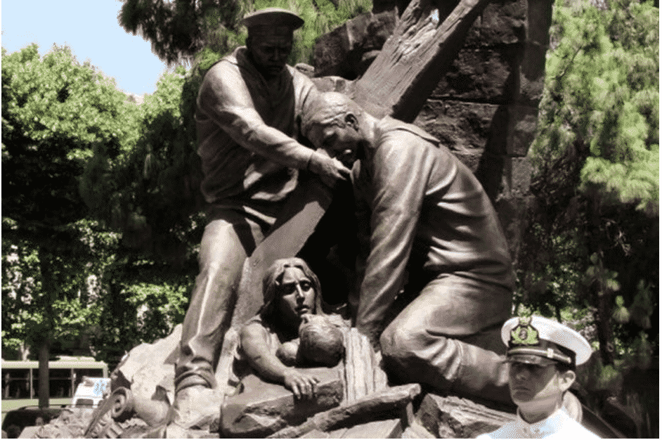 Споменик у част подвига руских морнара који су спасили становнике Месине (Сицилија) након разорног земљотреса у децембру 1908. Натпис на два језика: „Руски морнари, хероји милосрђа и самопожртвовања. Захвални потомци и становници Месине“