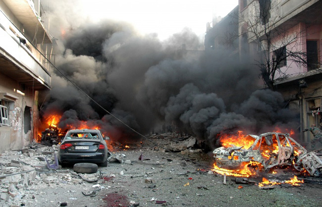 У ваздух су одлетела два аутомобила напуњена експлозивом. И, као што је лако замислити: експлодирали су у делу града под контролом владиних снага.
