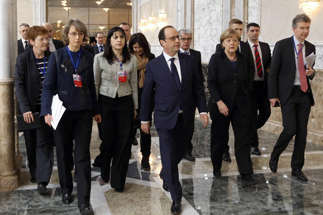 ПРЕГОВОРИ у Минску „нормандијске четворке“ - Владимира Путина, Ангеле Меркел, Франсоа Оланда и Петра Порошенка - трајали су пуних 16 сати, али су донели резултат.