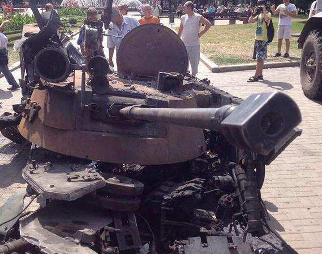 Како је и обећао премијер Доњецке Републике, Александар Захарченко, у центру Доњецку је била „изложена” и мање или више оштећена украјинска ратна техника. Тенкови, транспортери, топови...