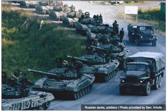 - Сенатор Џим ИНХОФ и његови сарадници признали да нису проверили снимке добијене од украјинских посланика, он још нагласио да је љут, али му то није сметало да изјави: „То не мења чињеницу да има много доказа да су Руси ушли у Украјину тенковима Т-72 и да проруски сепаратисти хладнокрвно убијају Украјинце“