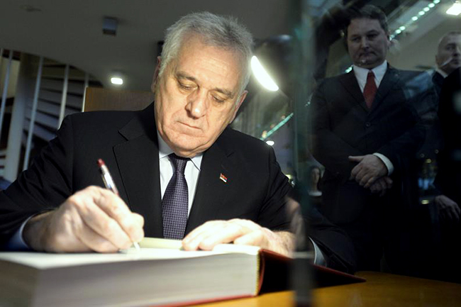 - Пре три године прихватио да буде покровитељ Народне библиотеке Србије, а данас нагласио да су за те три године у целости обновљени трезор и фототека Одељења за археографију и набављене компакт полице. Најавио је да ће ове године бити завршен екстерни депо, који је веома важан за даље одлагање књига