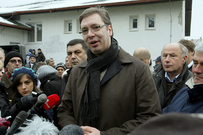 Коментаришући добацивања „ Ви сте слуге Брисела“ Вучић је рекао „ ми смо слуге нашег народа, па и вас неколико лепо трпимо и поштујемо“ и поручио да ће народ на изборима показати коме даје подршку.