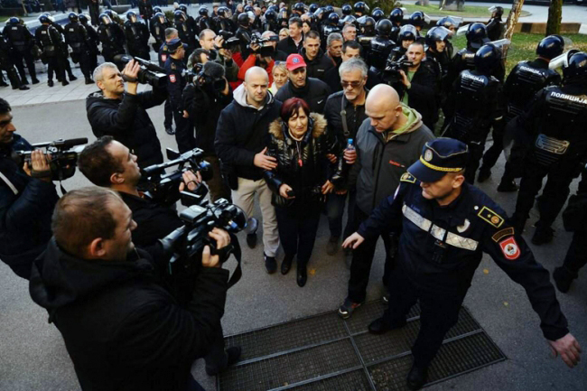 Председница Савеза синдиката Ранка Мишић ушла је у зграду Народне скупштине РС. Њу су заједно са још 40-ак људи пропустили припадници специјалне полиције који су формирали обруч око самог улаза у Скупштину.