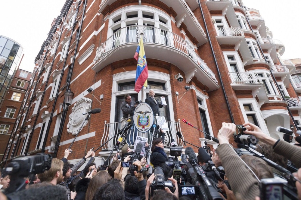 Асанж, 47-годишњи Аустралијанац, борави силом прилика у амбасади Еквадора у Лондону, откако је добио политички азил те земље. А из ње не сме ни нос да промоли, ни корак да искорачи, јер би га даноноћни британски специјални полицијски чувари, тачније хајкачи, одмах ухапсили и депортовали у САД! Амбасада Еквадора је годинама практично опкољена  полицијом, камерама, доушницима.