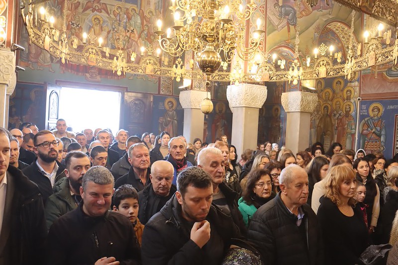 По овим светим службама, како народ приступа светом путиру и светоме храму, како радо иде на свете службе Божије, видимо да је Херцеговина очувала и завјет Светога Саве и завјет Светога Василија Острошкога. Нека вам буде срећно и благословено! И овај свијетли дан да буде благословен и да се поносите са својим великим прецима, којих сте пуно имали у историји, а имате и данас великих личности и даће Бог да их буде и у будућности. Видимо ову дјецу како узрастају у храму Божијем, како цвјетају и тијелом и духом, даће Бог да и они буду велики људи, да донесу радост својим родитељима и својој Цркви и своме народу. Амин, Боже дај, на многа и блага љета!“