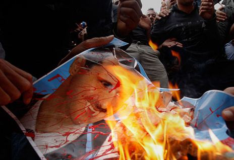 Демонстранти спаљују слику Башара Асада