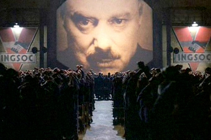 Орвел у „1984“ описује живот у измишљеној тоталитарној држави Океанији, са седиштем у Лондону, а главни јунак, Винстон Смит, ради у министарству истине које фалсификује вести и историју земље у складу са политиком владајуће партије на чијем је челу Велики Брат.