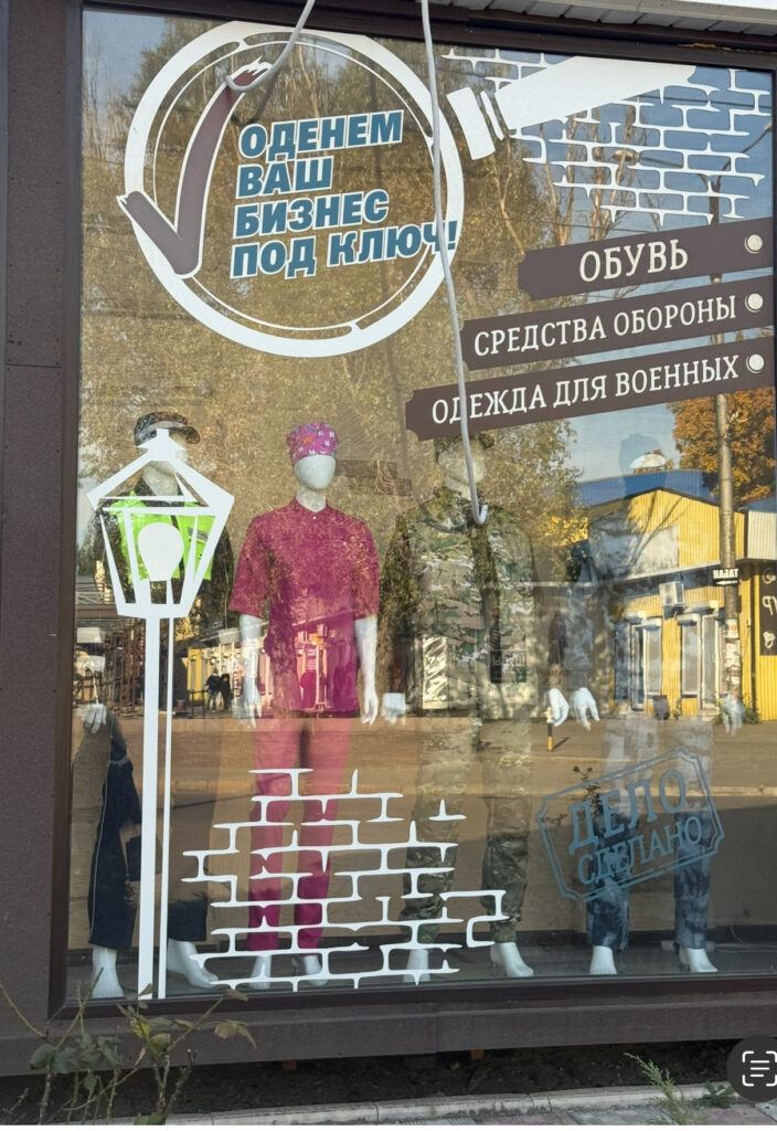 Продавнице су пуне војних униформи и ознака — савршен сувенир за посетиоце. Али, добила сам термос боцу са натписом «Доњецк» и ружом као успомену на град ружа и његове становнике, праве хероје. А они тако не мисле.