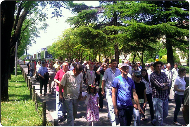 13.23 Испред зграде Владе разглас одакле ће се организатори обратити присутнима. Са разгласа се чује „Ода радости“ и набрајање свих лоших и сумњивих приватизација.