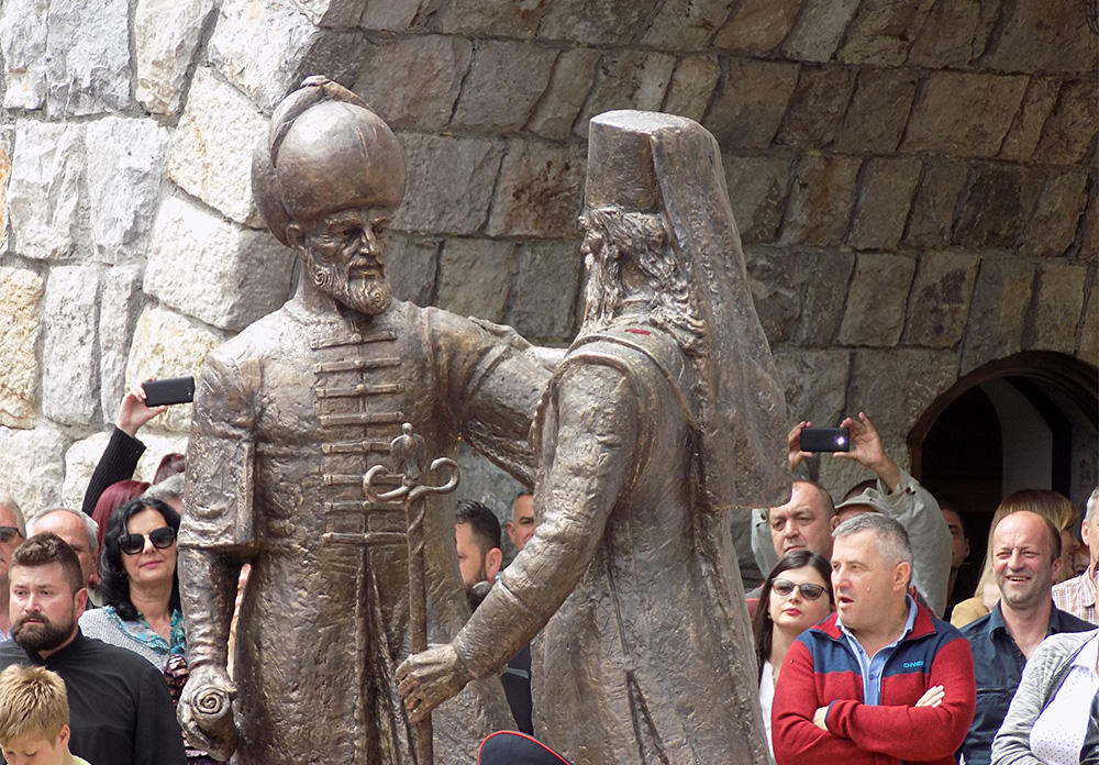 Посебно их љути Емирово дивљење Андрићу - Андрић град, Андрићев институт и, више од свега скулптура испред Института: сусрет два брата - патријарха Макарија и везира Мехмед-паше.
